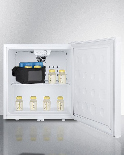 Inside the MC2, the 1.7 cu. ft. provides ample storage for nursing mothers. Automatic defrost operation ensures a low maintenance performance, perfect for dependable, long-term use. An internal fan helps to keep the interior temperature even for added temperature stability, while a flat door liner helps to improve temperature performance by eliminating hot spots due to door openings. A removable shelf is included to accommodate a variety of stored items.