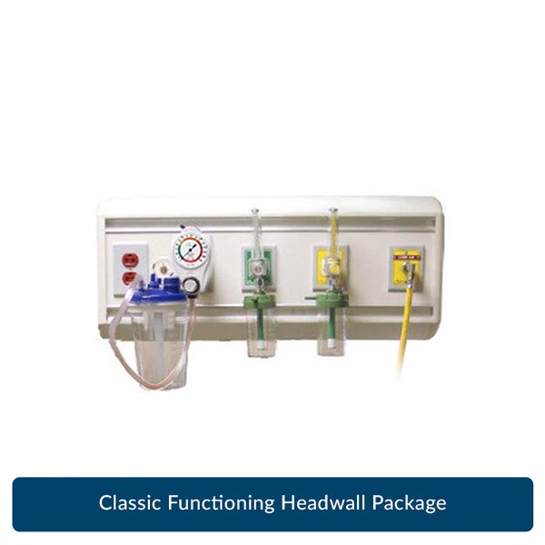 Available in a variety of value-added packages with simple installation and maintenance, Discover Headwalls serve as a cornerstone for any simulation or skills lab. Designed to simulate oxygen, air, and suction using a single air source, the Discover Headwall connects to an external Silent Air Compressor to provide realistic functionality.