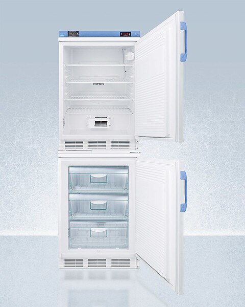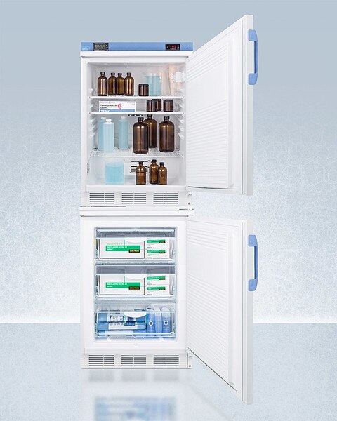 The Accucold Stacked Medical Refrigerator-Freezer is a purpose-built, stacked refrigerator-freezer combination designed to meet the stringent requirements of medical, pharmaceutical, and laboratory environments.This unit combines the FF7LWBIMED2 all-refrigerator and the VT65MLBIMED2 all-freezer into a compact, space-saving footprint, ensuring optimal storage conditions for temperature-sensitive materials.