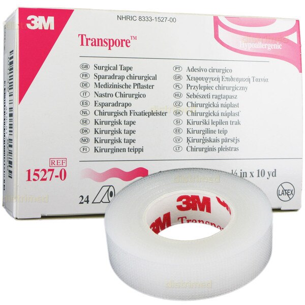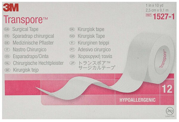 3M™ Transpore™ Surgical Tape – Latex-Free, Transparent, Hypoallergenic, Water-Resistant, 24/Box