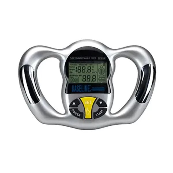 The Baseline Body Fat Monitor is an important tool to help determine patients' health and fitness. Teach students how to measure body fat, body mass index (BMI,) and Kilo Calorie (KCAL). Practicing to use a monitor like this will help students learn how to create a safe and healthy exercise and diet plan for patients.