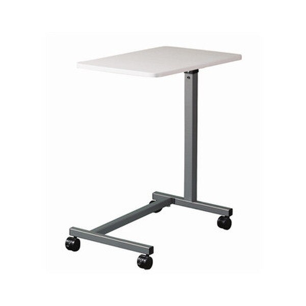 - Overbed Table from Brewer features an easy spring-loaded height adjustment and a 15″ x 30″ gray laminate finish top