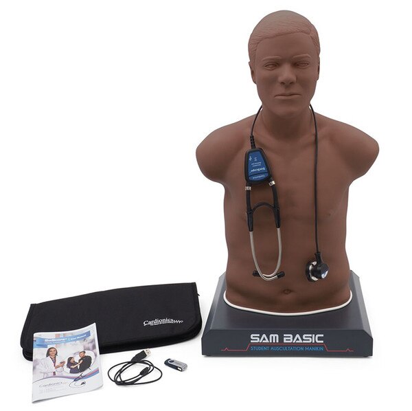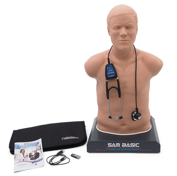 - SAM Basic Student Auscultation Manikin from Cardionics utilizes the SimScope stethoscope to simulate adult heart, lung, and bowel sounds utilizing a large sounds library