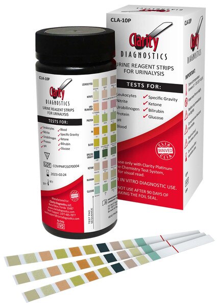 Clarity®Clarity Platinum 10 Urine Reagent Strips provide a fast and reliable method for testing 10 different parameters of urine composition. Designed for exclusive use with the Clarity Platinum Urine Analyzer, these strips enable accurate monitoring of various health indicators. Each strip is easy to use, allowing healthcare professionals to obtain results quickly and efficiently, making them an essential tool for any medical practice or laboratory focused on patient care and diagnostics.® Platinum Urine Analyzer only (02-87-5882, sold separately).