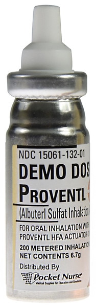 Demo Dose® Ventoln HFA (albuterl sulfat) is a simulated inhalation aerosol used to teach the treatment or prevention of bronchospasm and exercise-induced bronchospasm (EIB) in people 4 years and older with reversible obstructive airway disease.