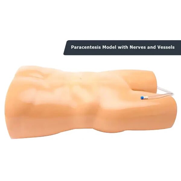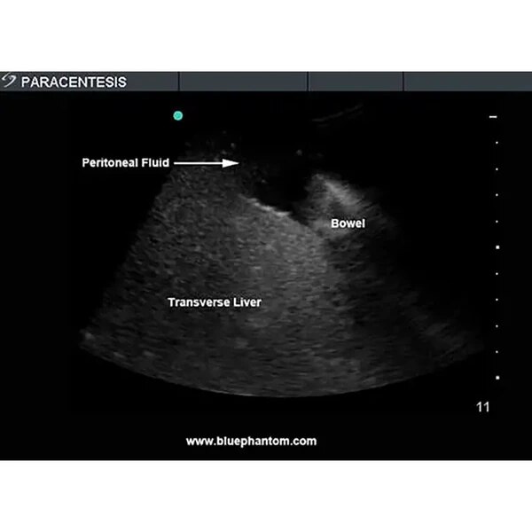 This full torso model is ideal for practicing the psychomotor skills necessary for learning image acquisition and interpretation, identifying intraperitoneal fluid, and performing ultrasound-guided paracentesis. The patented Simulex™ tissue insert allows learners to practice identifying, localizing and targeting the relevant structures with ultrasound recognizing the liver, bowel, and intraperitoneal fluid collections; target the appropriate fluid pocket, and guide the needle to the targeted pocket in real time for pathological assessment. The Simulex™ tissue has self-healing properties, allowing for 1,000+ punctures when used with 18-21 gauge needles.