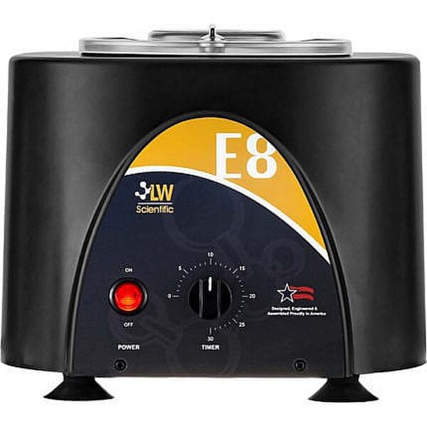 - E8 Centrifuge from LW Scientific features auto-calibrating speed for precision results, auto-brake to stop the rotor in less than 30 seconds, and 12 volt DC maintenance-free motor