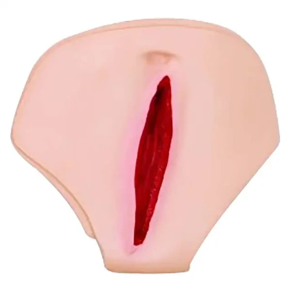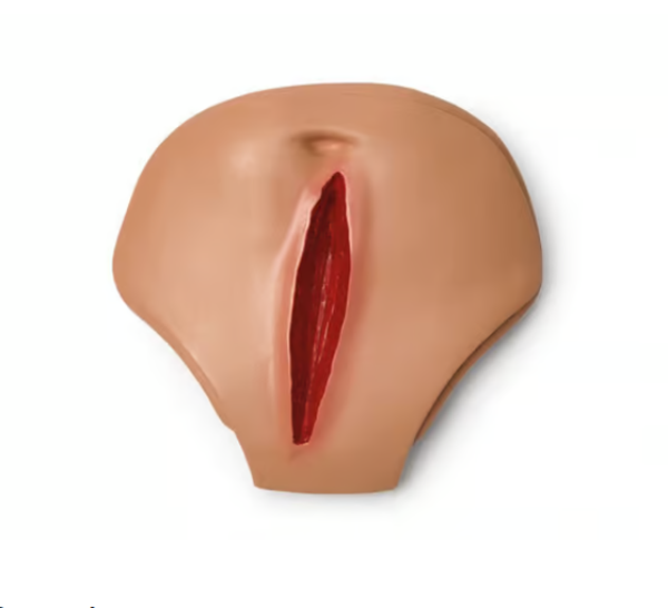 Abdominal module with simulated blood, suitable for simulations with wet or dry packing and wound irrigation.