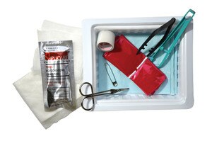 - Four (4) tissue pads representing 1+ to 4+ edema
