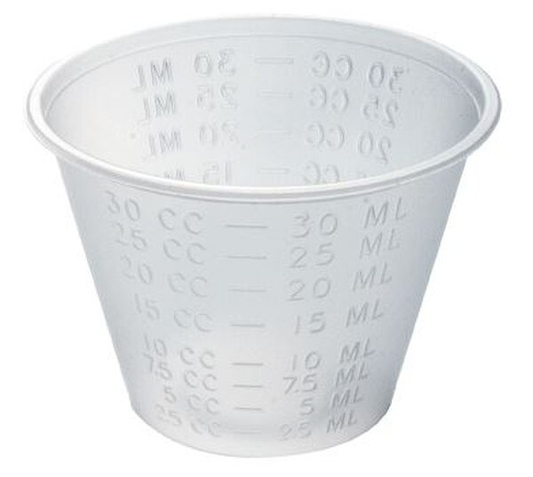 - Ensure precise medication administration with Medline's Plastic Disposable Graduated Medicine Cups. Each 1 oz cup is clearly marked with mL/cc graduations, allowing for accurate dosage measurements. Designed for single use, these medicine cups help maintain hygiene and reduce the risk of cross-contamination. Perfect for use in hospitals, clinics, and other healthcare settings, this pack of 10 provides a convenient and reliable solution for dispensing liquid medications.