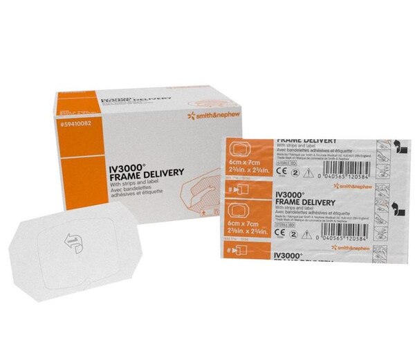 Opsite IV3000 Frame Delivery Moisture Responsive Catheter Dressing is specifically designed to meet the needs of catheter fixation and to keep the catheter site dry. This highly permeable film features three-sided frame delivery system that combines high moisture control with easy application. The large frame border opening allows for easy molding around larger catheters and connectors.