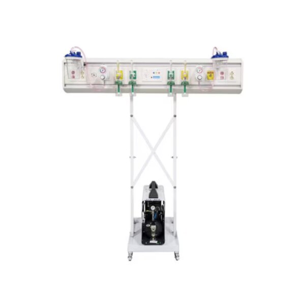 The 60″ Functioning Mobile Discover Headwall Package simulates oxygen, air and suction with one source of air by connecting to an external air compressor. This mobile headwall package is thousands of dollars less than a traditional centralized system with air, oxygen and vacuum. The 60″ Discover is a popular option when servicing 2 beds or for OB suites as it has a dual configuration for both mother and infant. This package includes a mobile cart so that the headwall can easily be moved from room to room or bed to bed.