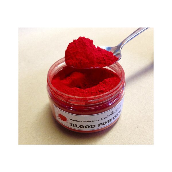 Simulated blood powder is highly concentrated and will dissolve in water, vegetable oil, corn syrup, and petroleum jelly. It is ideal for use in situations that call for large quantities of splash blood (in a casualty scene, on a vehicle, on the ground, on people, etc.).